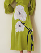 Ready to be the best-dressed guest? A perfect concoction of simple elegance and statement style, this satin number is designed with a cowl neckline, long flute sleeves and a bold illustrative floral design across the midi-length silhouette. Finished with a discreet back zip fastening. Green