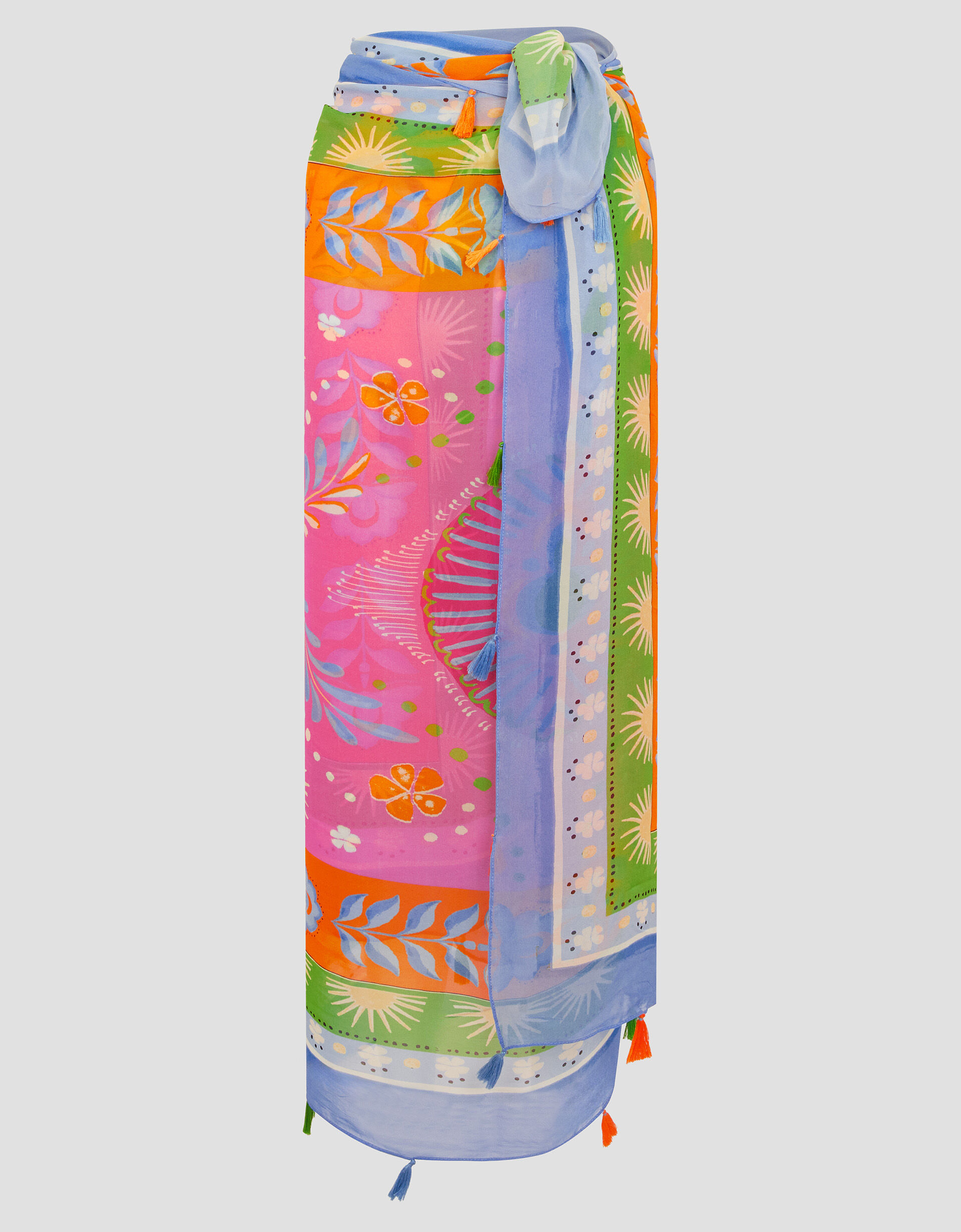 The epitome of summer vibes. Designed in a breezy, lightweight fabric and patterned with vibrant motifs, this sarong is a suitcase must. Tie it around your bikini when heading to the beach bar or use it as a blanket for lounging on the beach.