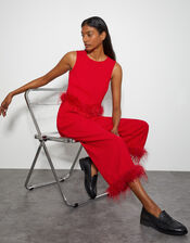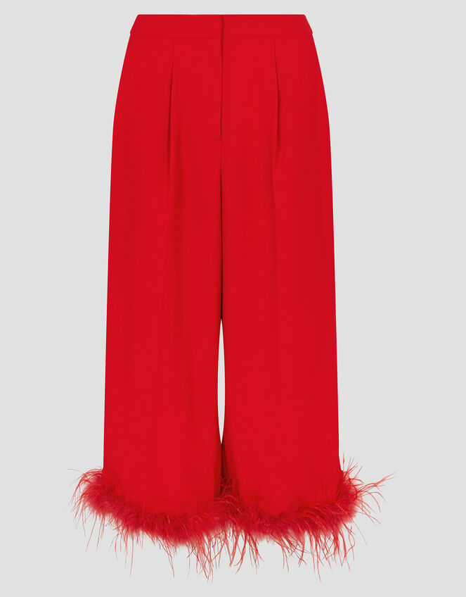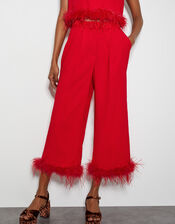 Monsoon x Sarah Corbett-Winder Feather Trim Cropped Trousers Red