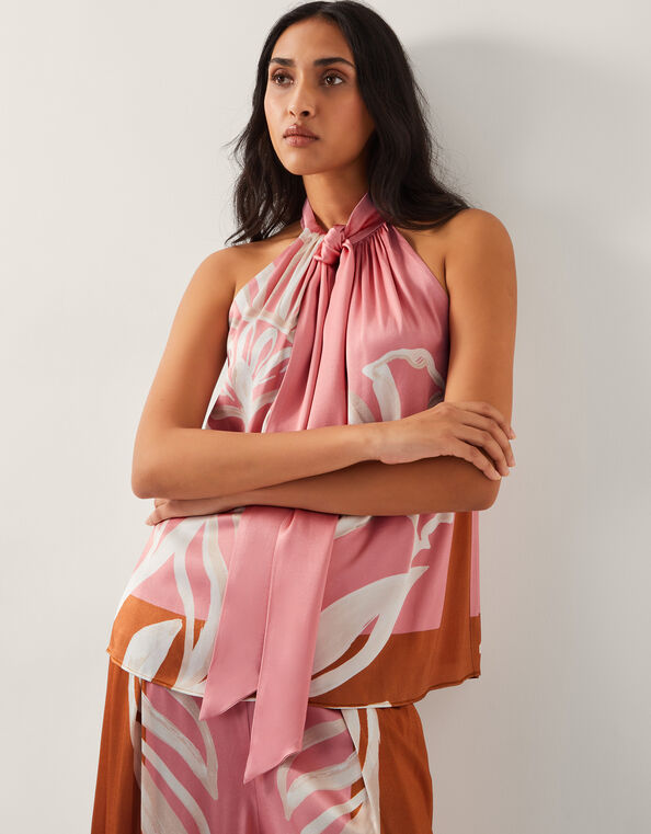 Pelia Floral Satin Ruffle Midi Dress Pink