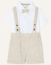 Dressing your wriggly little ones will be easier than ever with this set in their collection. Including smart, striped shorts with adjustable braces and an easy button-up white shirt, you'll find yourself reaching for this outfit for every occasion. Just look at the adorable matching bow tie to finish! Natural