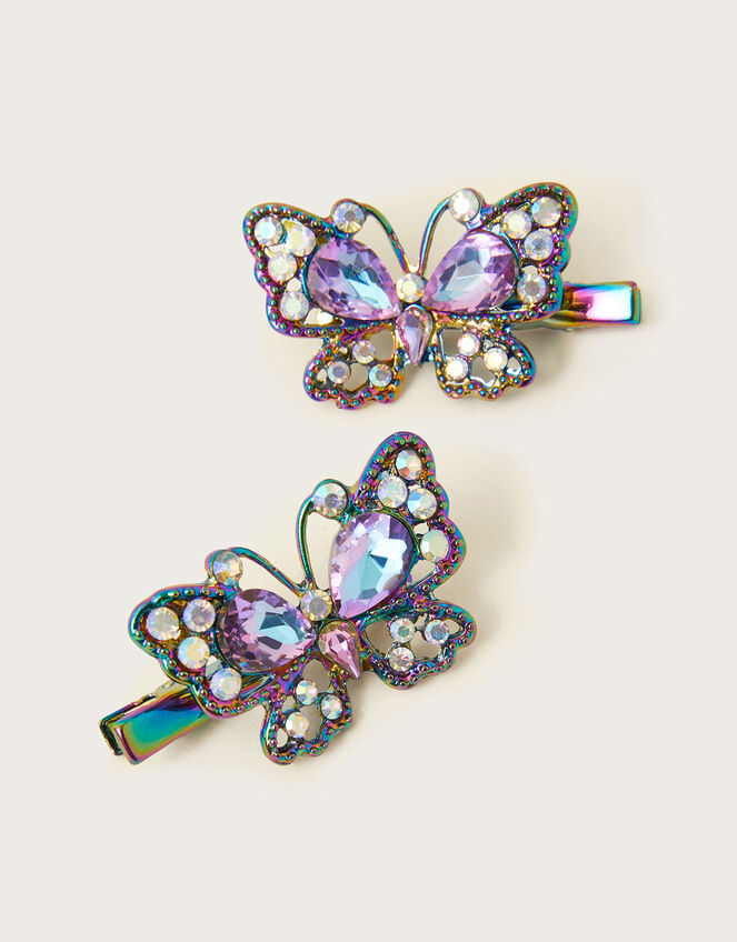 Beauuuutiful butterflies! Putting some sparkle in their style, this hair clip duo is the perfect finishing touch. Each piece features a diamanté encrusted butterfly sat atop an iridescent salon clip. Two included.