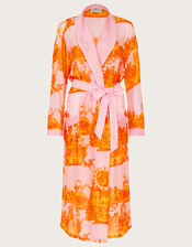 Inspired by ancient Roman and Greek architecture, expect to find a unique print over this beloved gown profile. Falling to mid-calf, it features a wrap front with contrast trims and pockets to finish on the sides. A luxurious house coat or elevated layer for evenings, it's a fluid choice to introduce into your edit.