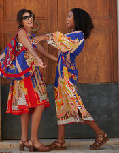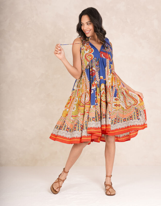 The product: Destination dressing. Cloaked with decorative floral patterns in bright, bold colours, this mini dress is perfect for summertime. Designed with a sleeveless bodice and an ultra-swishy hem for statement flair.