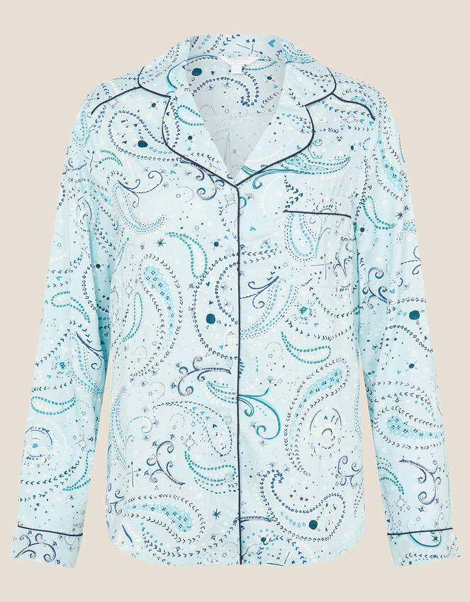 Paisley Print Button Pyjama Shirt Blue