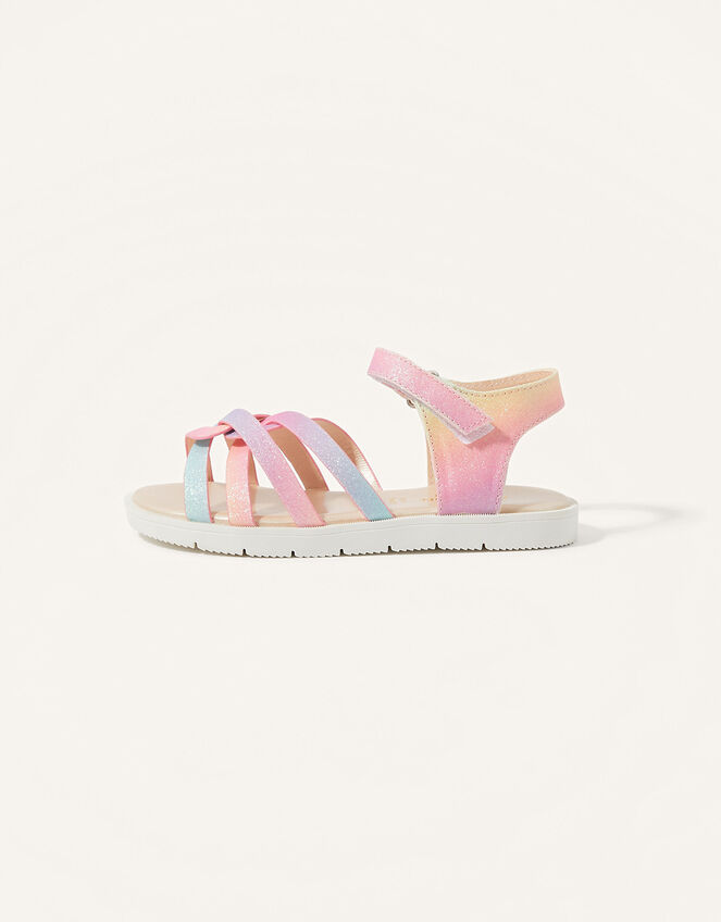 These summer stompers are perfect for long walks on the beach. They feature fun cross strap detailing to the foot, with a secure rip-tape strap over the ankle. Finished with a subtle shimmer to reflect the holiday sun! Multi