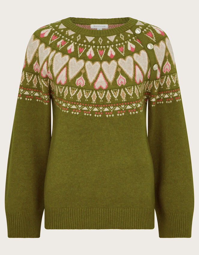 Paula Heart Fair Isle Knit Jumper Green