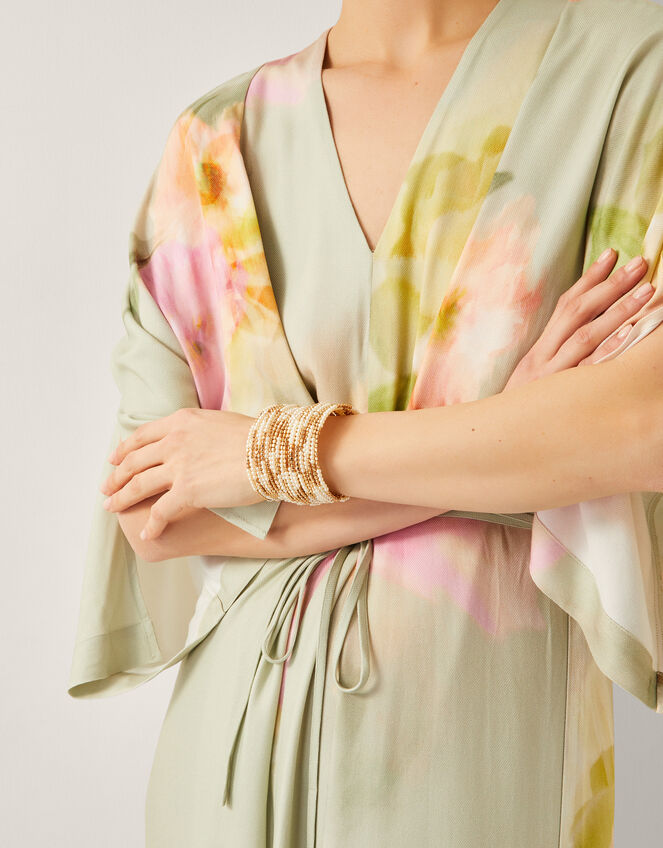A little off the cuff. Statement jewels for summertime, this bracelet is comprised of endless beads with gold and pearly finishes.