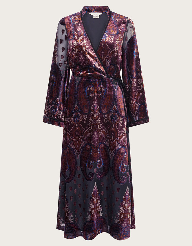 Stevie Nicks, is that you? Doused in a paisley print, this velvet dress is designed with soft angel sleeves. It features delicate ties under the bust that hugs your frame in all the right places. Black