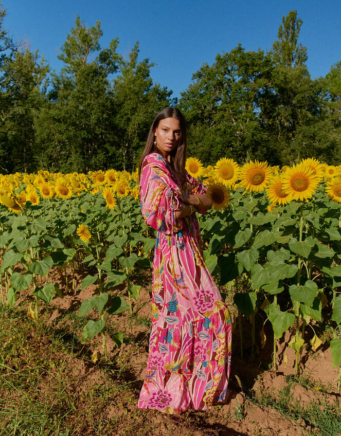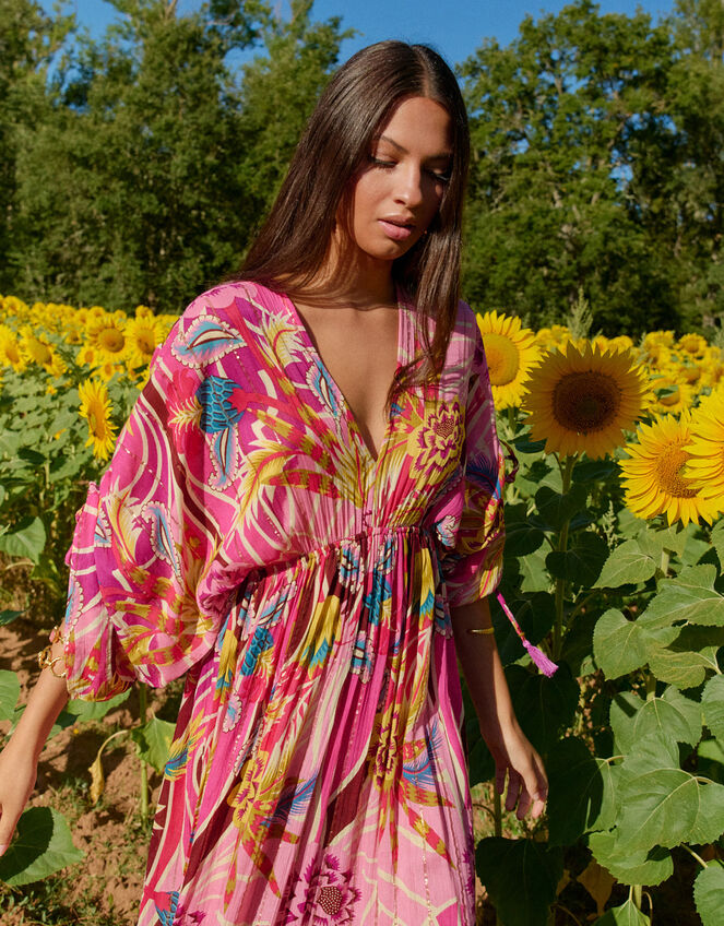 Piti Cuiti Floral Print Maxi Kaftan Dress Pink