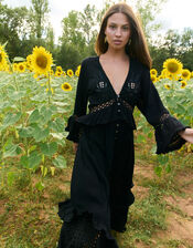 Piti Cuiti Frilly Cutwork Maxi Dress Black
