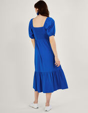 Wander around food festivals and cocktail gardens in this dress, ideal for sun-drenched days. The royal blue hue is found through the puff sleeves, tiered midi skirt and bodice, finished with an o-ring detail that brings a unique focus point to the design. Finished with a stretchy shirred panel on the back for extra comfort. Blue