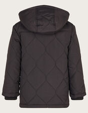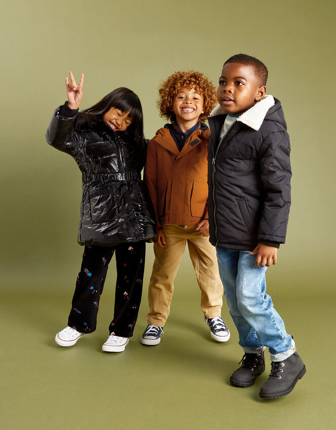To the playground! Lined with a borg interior, this oh-so-cosy coat features a quilted, padded exterior to keep them warm through winter lunch breaks. Designed with a hood, zip fastening, and ribbed cuffs to ensure a secure fit during break time activities, this coat is finished with pockets to the front to keep chilly hands warm. Black