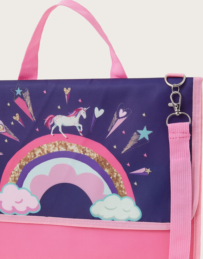 For the bookworms. Whether it's school textbooks, reading books or magazines, this book bag boasts plenty of room for all their favourite reads. Finished with a unicorn print to the front, a rip-tape fold-over flap, and adjustable cross-body strap.
