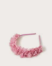 Hello, sunshine. Topped with ruffled florals, this pretty pink headband adds an ethereal touch to day dresses and two pieces.