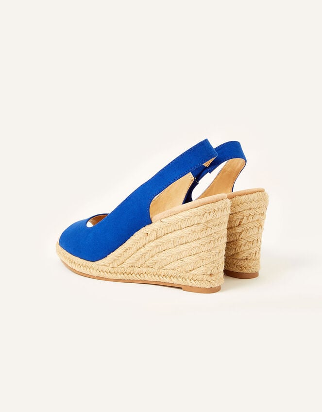 Lift your look with these royal blue wedges, designed with a peep toe and an espadrille wedge. Comfortable and stylish, they're perfect for summer weddings and garden parties. Blue