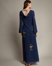Sarah Flute Sleeve Floral Sequin Maxi Dress Blue
