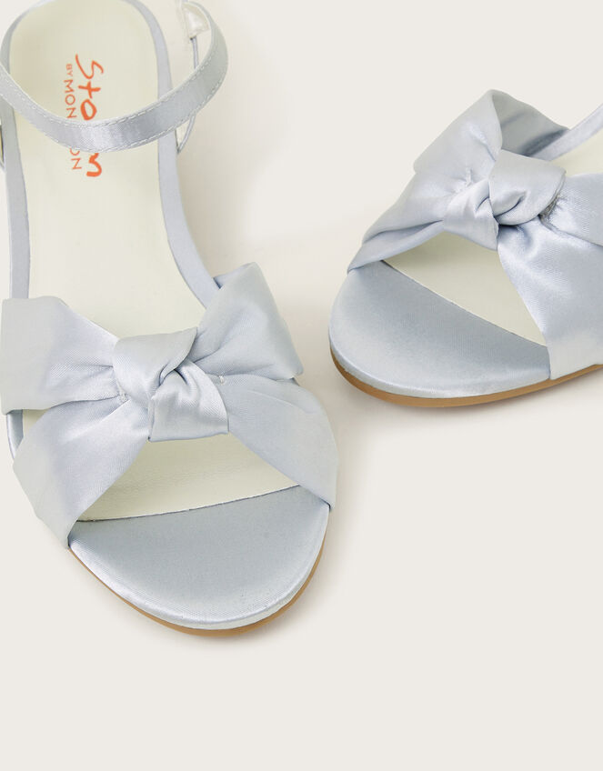 Twist and shout! Designed in icy satin, these heels feature twist detailing and block heels. Fasten with a pin-buckle strap. Silver
