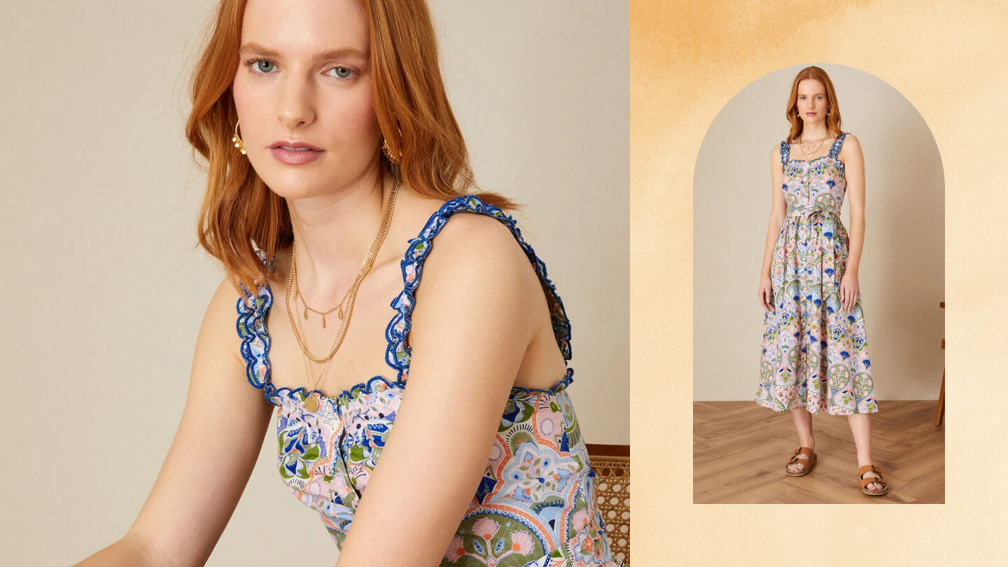 Nothing says summer like a crisp, pure-cotton tea dress. The Gracie Dress brings retro appeal with its cinched waist, full skirt and vintage-inspired print. And it’s crafted from ‘more sustainable cotton’, which means cotton that’s been produced by farmers who are trained in sustainable agricultural practices. These farmers grow cotton in a way that reduces stress on the local environment and improves the livelihoods and welfare of farming communities.