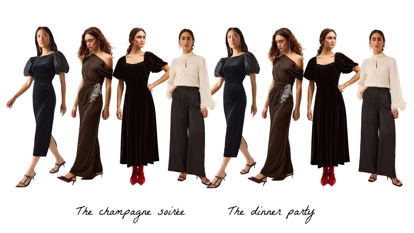 From little black dresses to velvet and knits, here’s our guide to New Year’s Eve outfits for every kind of plan, designed with confidence, comfort and timeless style in mind.
