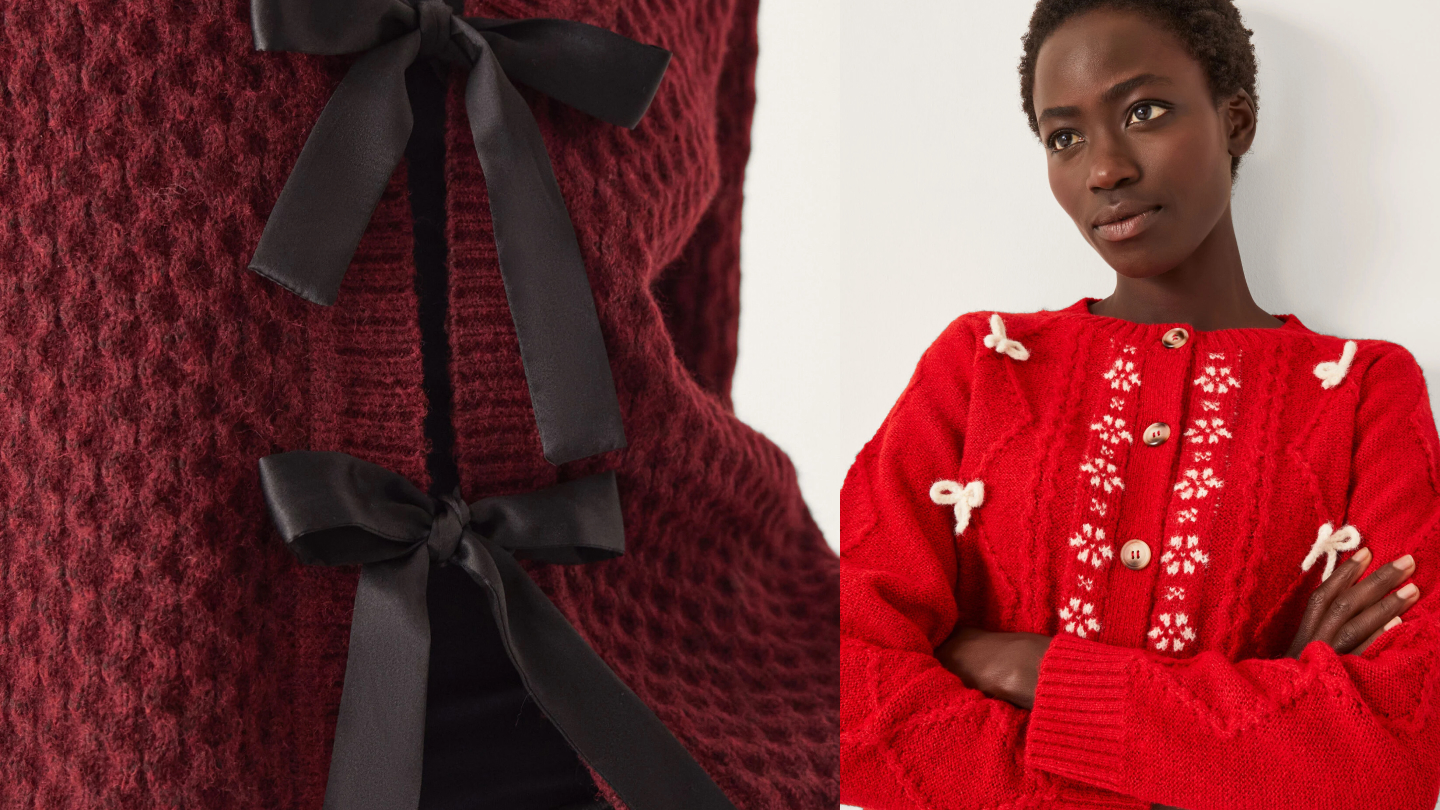 Nothing says Christmas like big, bold, beautiful bows. Whether you choose a burgundy cardigan that ties at the front with satin bows or a cable knit with cute little 3D bow details, you’re never not going to feel fabulous and fancy wearing one of these.