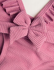 Bow-tiful. Designed in a pink swim fabric with a seersucker finish, this cute bikini set is decorated with frills and a bow at the centre of the triangle top. Now, where's the pool slide?