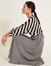 Walk and talk. The office, bar, dimly-lit restaurant, you name it and this dress is ready to go. Featuring contrast stripes through the shirt-style bodice and midi-length, A-line skirt, this soft satin dress will beautify any occasion. Black