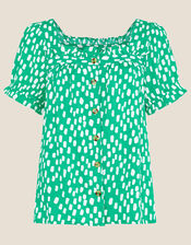Square Neck Printed Top Green