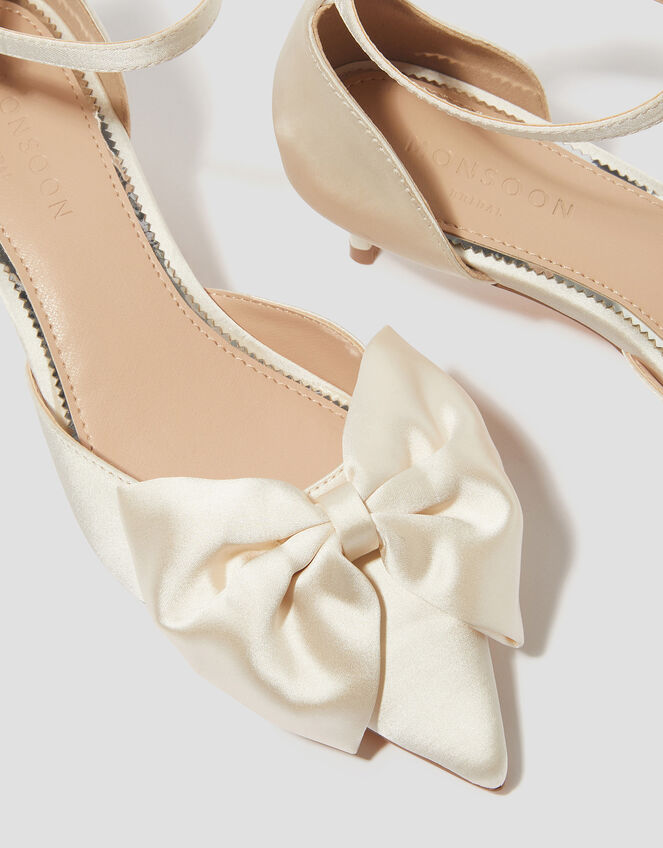 Stacy Satin Bow Pointed Toe Heels Ivory