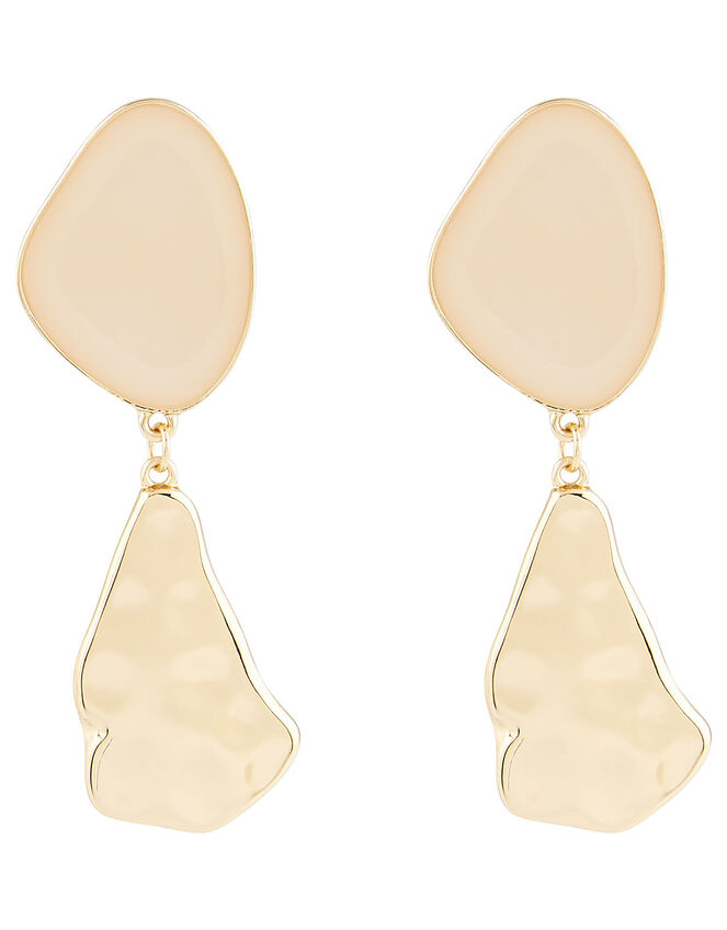 Allow these drop earrings to add a touch of sophistication to your outfit. Cast in gold-tone metal, they feature a duo of smooth stones. Non-refundable.