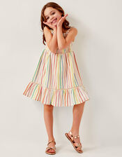 Be the rainbow. A style they can wear day or night, this dress is made from summer-ready cotton and features a strappy smocked bodice and colourful stripes to finish. Complete the look with their favourite sandals. Multi