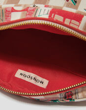 Trip to the big city? We've got you covered. Whether it's a night out at the theatre or sauntering along the streets of Soho, this make up bag will keep your beauty essentials in one place. Finished in a crescent profile, it presents a stripe backdrop with a London-centric print. Closes with a zip fastening.