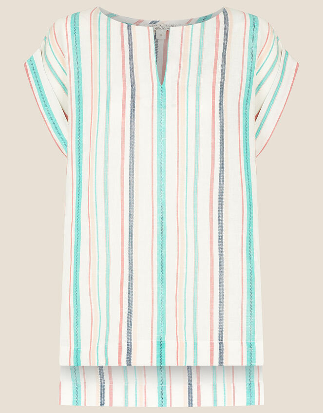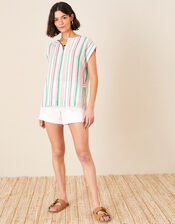 Stripe Print Top in Linen Blend White