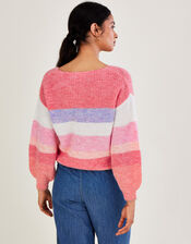 Stripe V Neck Jumper with Recycled Polyester Orange