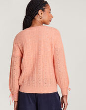 We're peachy keen for this cardigan, designed with an all-over pointelle finish. The scalloped neckline falls into the button through fastening, with tie-detail ribbed cuffs. Just layer it over your jeans and t-shirt combo for a pop of colour. Orange