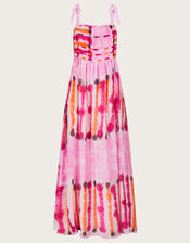 Floaty, lightweight satin builds our Talitha dress, drenched in a colourful tie dye print and subtle sequin embellishments. The detailed bodice combines shirred panelling and sits as a square neck, with thick tie straps to finish. Falling to maxi length, style it with your strappy sandals to take it to dinner. Fully lined. Pink