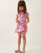 Sunshine ready! The perfect outfit for day trips on holiday, this set includes a shirred top and skort, both patterned with tropical hibiscus flowers in pigment-popping colours. Just add sandals (and SPF). Pink