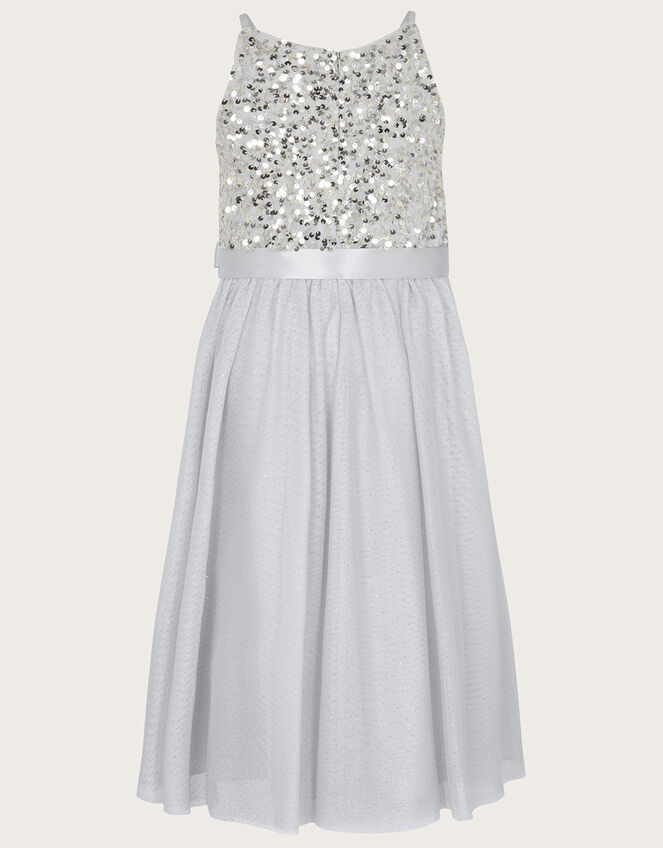 They're sure to look suitably sparkly in our Truth gown, featuring sparkly sequins and layers of tulle. Around the waist sits a glossy ribbon tied in a bow and the back fastens with a concealed zip. Ideal for little party-goers, style with ballerina flats to provide comfort during long days. Grey