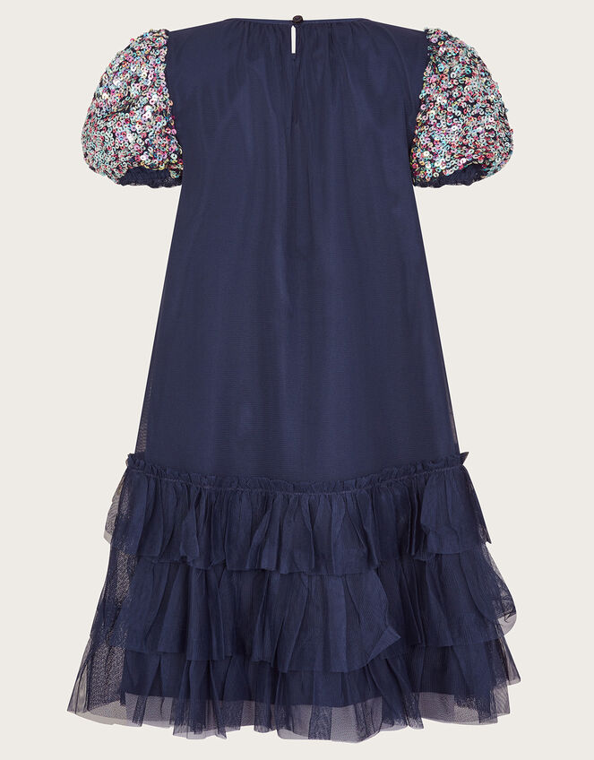 Easy, trapeze-y! Give their wardrobe a sprinkling of magic with this trapeze dress, designed with sequin puff sleeves and unicorns on the bodice. The trapeze silhouette features a ruffled skirt for a playful and relaxed fit.