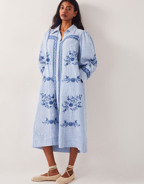 Scotch & Soda Embroidered Short Sleeve Midi Dress Grey