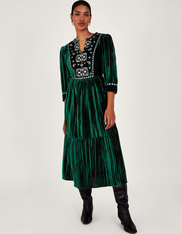 La Galeria Elefante Mexican Embroidered Velvet Midi Dress Black