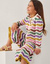 Be the rainbow! Knitwear they can wear in every season, this cardigan is crocheted with zig-zag stripes in an array of bright colours. Designed with front button fastenings and a scalloped finish. Multi